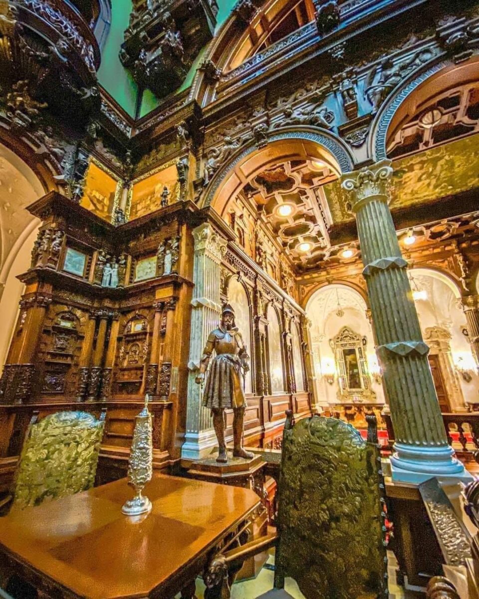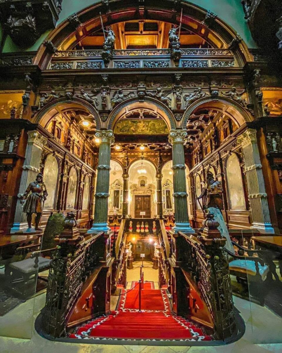 În zece ani de construcție, Castelul Peleș devine o simfonie de stiluri arhitectonice. Turnurile gotice se îmbină cu logiile renascentiste, terasele baroce cu ferestrele în stil maur. Fiecare sală își are personalitatea ei: Sala de Arme cu panoplia medievală, Biblioteca cu 25.000 de volume, Sala de Teatru cu scena ei intimă.