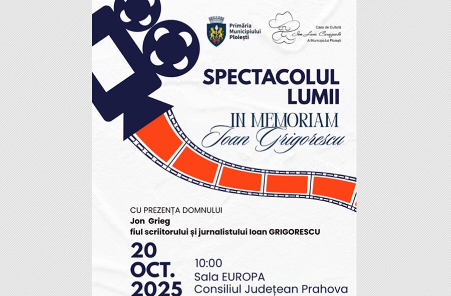Casa de Cultură „Ion Luca Caragiale” a Municipiului Ploiești, în parteneriat cu Primăria Municipiului Ploiești și cu sprijinul Consiliului Județean Prahova, organizează luni, 20 octombrie 2025, începând cu ora 10:00, la Sala EUROPA din cadrul Consiliului Județean Prahova, evenimentul cultural „Spectacolul lumii – in memoriam Ioan Grigorescu”.